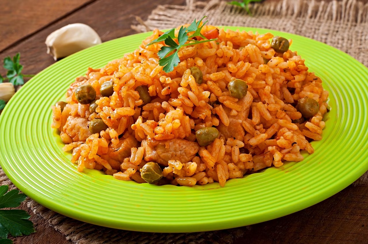 Los gandules se mezclan con cebolla, tomate y especias, y se incorporan al arroz para cocinar. A menudo se les llama simplemente "Arroz con Guisantes", pero se les añaden muchos sabores sabrosos, como pasta de tomate, tomillo fresco y cerdo o tocino salados.